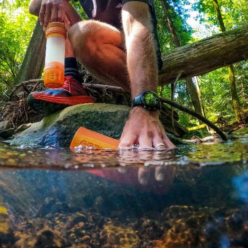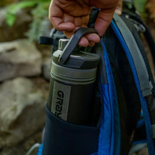 Compact, fun, and ridiculously easy to use — the 16.9oz UltraPress® Purifier Bottle fits into any pack pocket (or cup holder), requires zero setup, and makes safe, great tasting drinking water in a mere 10 seconds (3L/min). On-the-go filtration and purification for the hiker, backpacker, camper, emergency prepper or global traveler seeking fast-flow purified water for chugging, filling hydration reservoirs, or cooking. Simply—Fill. Press. Drink.™