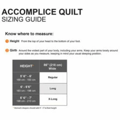 The Accomplice is a quilt, not a sleeping bag, which means it’s designed to be used with a sleeping pad to provide insulation underneath you, between you and the ground. The Accomplice doesn’t have zippers or built-in hoods, saving weight and space in your pack. The Accomplice comes with Standard Accomplice Straps.