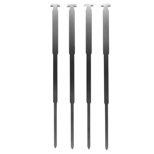 The innovative design of the Atani Titanium Tent Stakes include a wide upper portion to withstand guy-line forces at the source while the lower section is sharp and thin in order to penetrate hard ground. The upper indentation captures the loop in your guy-line and holds it secure when inserted into the ground and the flat design creates an anti-rotation characteristic.