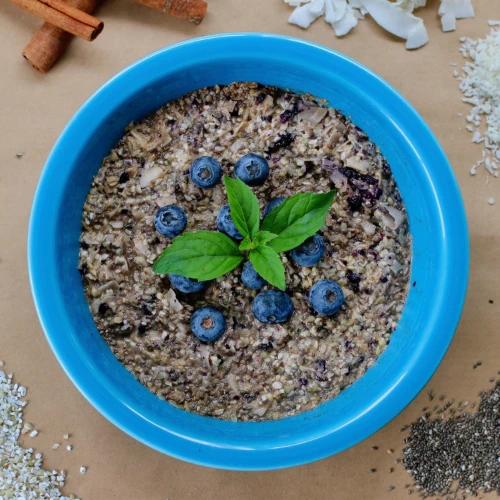 Ingredients: Buckwheat, Chia Seeds*. Dried Blueberries. Raw Sugar*. Hulled Hemp Seeds*. Coconut Milk (Coconut, Non-GMO Tapioca). Shredded Coconut*. Coconut Flakes*. Cinnamon. Sea Salt.