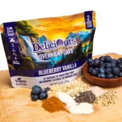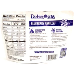 This meal reminds people of blueberry muffins, so DeliciOats thought about calling it that. But are there actual muffins in it? No. There are actual, delicious, whole blueberries and vanilla. No need to dress that up. DeliciOats thinks you’ll agree.