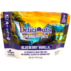 This meal reminds people of blueberry muffins, so DeliciOats thought about calling it that. But are there actual muffins in it? No. There are actual, delicious, whole blueberries and vanilla. No need to dress that up. DeliciOats thinks you’ll agree.