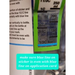 - Adhere sticker to bottle so that the 1/2 c line on sticker lines up with mark