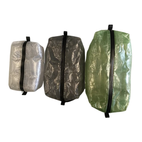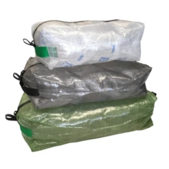 Ultralight boxy bags with a water-resistant zipper and a webbing loop! Ideal for toiletries, clothing, accessories, snacks, or just about anything else dry and organized.Â