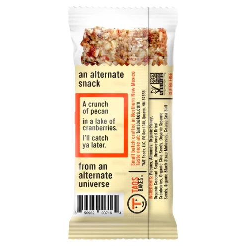 Ingredients: Pecans, Almonds, Organic Honey, Dried Cranberries (Cranberries, Sugar, Sunflower Oil), Organic Coconut Sugar, Organic Chia Seeds, Organic Sesame Seeds, Organic Black Strap Molasses, Coarse Sea Salt