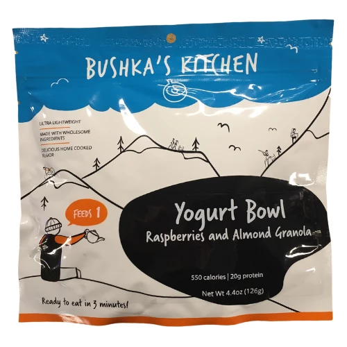 Bushka’s Kitchen Yogurt Bowls are so easy to prepare they are almost done before you get out of your sleeping bag. Add a little extra water for a smoother, thinner bowl or less for a chunkier, thicker, stick-to-your-ribs vibe.