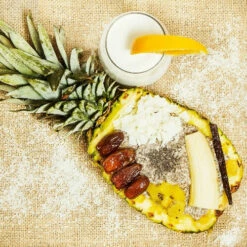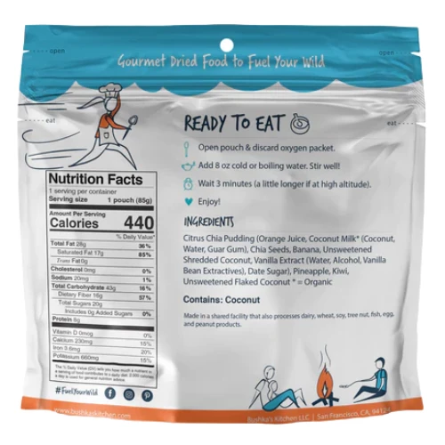 Ingredients:Â Citrus Chia Pudding (Fresh Orange Juice, Coconut Milk (Coconut, Water, Guar Gum), Chia Seeds, Banana, Unsweetened Shredded Coconut, Vanilla Extract (Water, Alcohol, Vanilla Bean Extractives), Date Sugar), Pineapple, Kiwi, Unsweetened Flaked Coconut