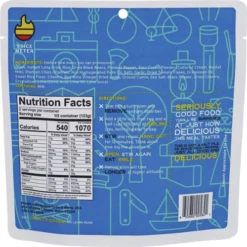 While this meal is vegetarian, even the hungriest of carnivores will appreciate the 15g of protein per serving, or 30g if you prefer a double serving. Garlic crema sauce and plantains create unique flavors you’ll find in no other camp meal.
