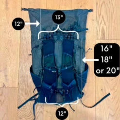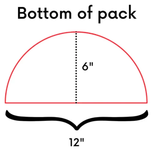 Note about dimensions: Because the Cutaway Pack is a tapered half-cylinder (not a simple rectangle like many packs), the dimensions cannot be expressed as a basic LxWxH. The bottom of the pack is a half-circle with a 6” radius (see photo #5). The back panel is 13” at the point where shoulder straps attach and tapers to 12” at the base (see photo #4). The circumference of the pack is ~35″ at 12″ below the collar seam and ~35.5″ at the collar seam. These dimensions allow a BV450 bear can to be packed in any orientation at mid- or upper-back. This is true for any of the torso lengths but the length of the pack below that point changes accordingly. The collar is 12” with a circumference of ~36” at the top opening regardless of pack size making the total height of the pack 12” + the torso length.