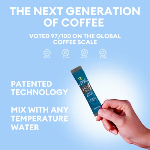 Enjoy Premium Cold-Brew Coffee in seconds! Made with high-elevation 100% Arabica beans from a Rainforest Alliance Certified coffee plantation that practices fully regenerative agriculture and organic farming practices.