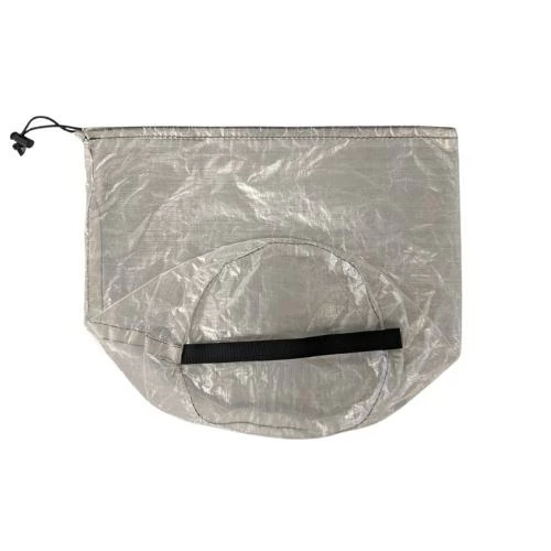 This simple but elegant draw cord bag will store your valuable titanium cooking pot, and will even fit a GSI Dualist. Really fits most pot / cook kits up to 5.5″ diameter.