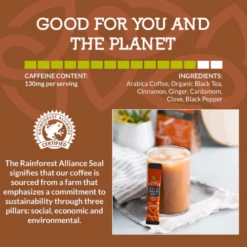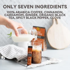 Ingredients: Arabica Coffee, Organic Black Tea, Cinnamon, Cardamom, Clove, Ginger, Black Pepper