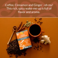 Enjoy premium coffee complexified by rich Indian Spices and Tea. Packed with 130mg of caffeine, this rich, spicy wake-me-up is full of flavor and aroma.