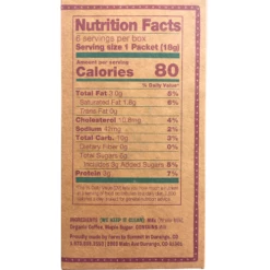 Single serving: 80 calories, 3g fat, 10g carb, 3g protein, 130mg caffeine