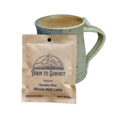 A double dose of organic instant coffee with whole milk and a touch of maple sugar.