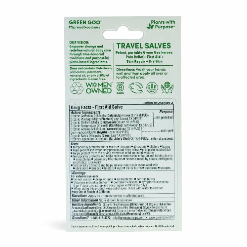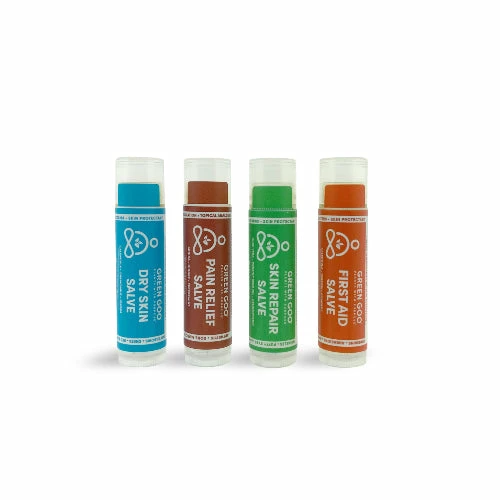 The products that started it all – now available as a portable collection. Once you add these four Green Goo Core Salves to your travel kit, you’ll never be without them when you need them most. Potent, plant-based, and multi-purpose, this quartet covers almost everything your skin might need from business trips to mountain getaways.
