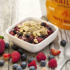 The perfect adventure deserves a perfect end—that’s what you get with these loaded fruit crisps. Made with real fruit and real crisp topping, they are equipped for winding down a well-trekked day.