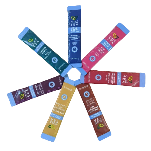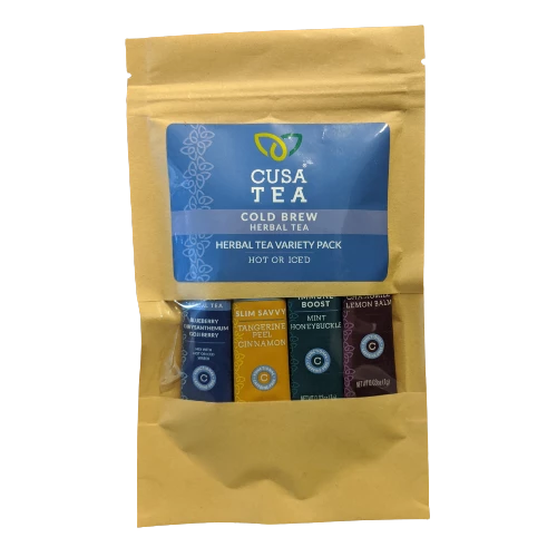 Instructions: Simply tear open the tea-stick, pour it into an empty 10-14oz cup, add water, and stir/mix/swirl to dissolve. To make iced tea, add cold water and ice after mixing. No more waiting 10-12 minutes to properly steep your herbal tea! Cusa is ready in seconds, using hot or cold water.