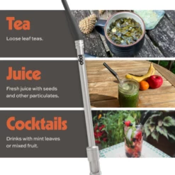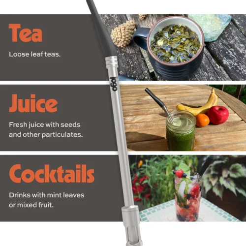 - Multipurpose – Can also be used to filter other beverages such as loose-leaf tea and muddled cocktails, or remove the filter and use it as a regular reusable straw