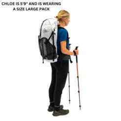 - Adjustable sternum strap with self-tensioning elastic and whistle
