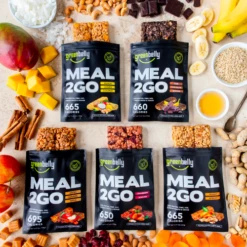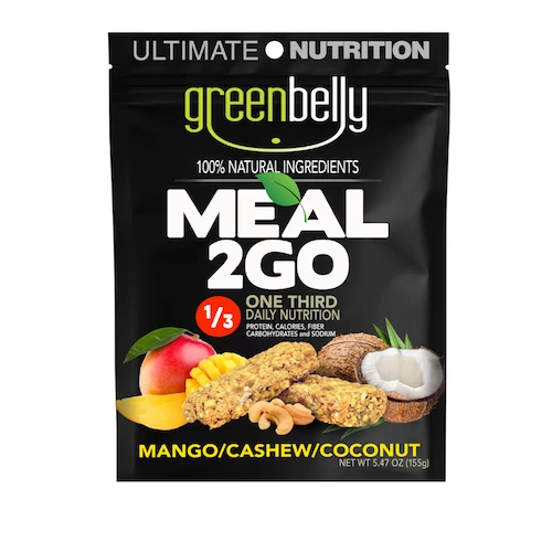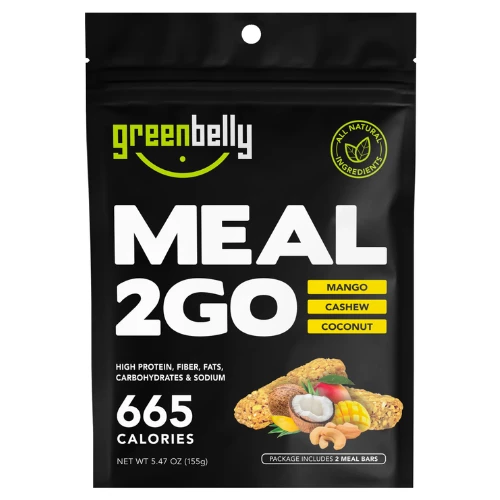 Goodbye 200 calorie snack bars. Each Greenbelly Meal pouch comes with two meal bars inside that provide a whopping 650 calories AND a balanced nutritional profile. As in over 25% of your Daily Value for six core nutrients: Calories, Carbohydrates, Protein, Sodium, Fat and Fiber. Weighing in approximately 5.5 oz, these things will keep you full while you crush miles.