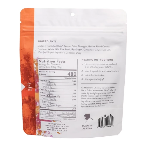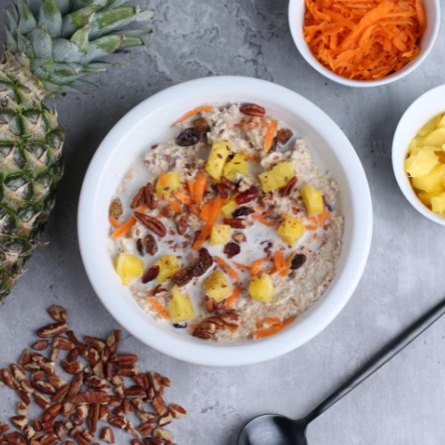 Ingredients: Gluten-Free Rolled Oats*. Pecans. Dried Pineapple. Raisins. Dried Carrots.