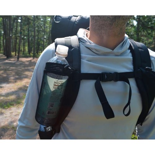- Adjustable flat bottom side pockets with drain hole – each pocket fits two 1L Smartwater bottles securely