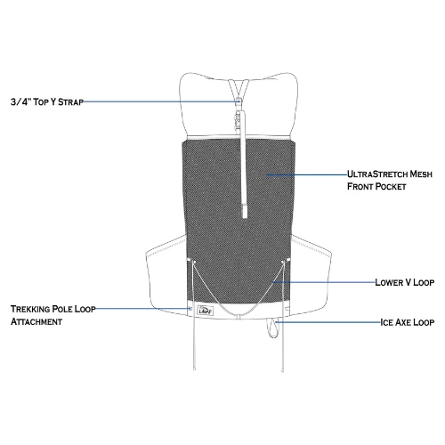 - Lower V loop (great for holding a sit pad or wet tent/tarp)