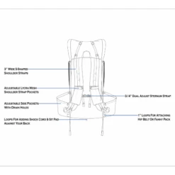 Hipbelt:Â No, 1″ webbing loops to attach your own hipbelt or fanny pack- Recommended Maximum Load Capacity:Â designed to comfortably carry ~20lbs