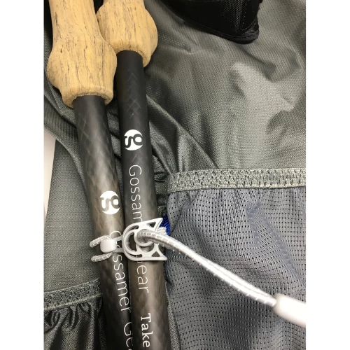 A simple way to attach trekking poles, umbrellas, or other things to a backpack.