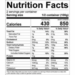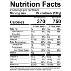 Single serving: 370 calories, 7g fat, 700mg sodium, 70g carb, 12g protein