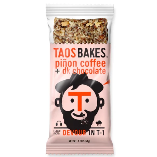 Piñon Coffee lives up to the buzz, with a bold first impression and delightfully caffeinated punch. Crunchy almonds, local piñon nuts, and coffee topped with a dark chocolate drizzle.