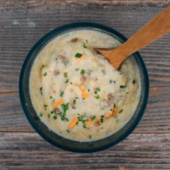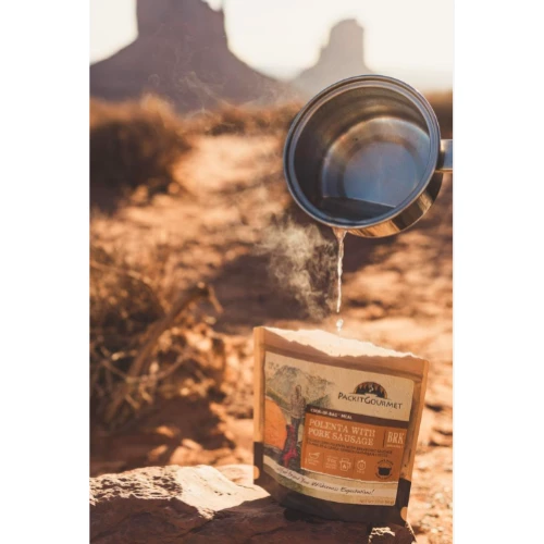 Packit Gourmet’s Polenta with Pork Sausage is made from Italian ground yellow corn and blended with whole milk, parmesan cheese, sweet cream butter, a Tuscan herb blend and savory seasoned pork sausage crumbles.