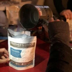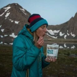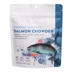 There’s a reason the Smoked Sockeye Salmon Chowder is Heather’s Choice favorite backpacking meal! The salmon is wild-caught in the Cook Inlet of Alaska and hot smoked just down the road in Ninilchik. Heather’s Choice mixes a hefty portion of salmon with carrots, celery, and potatoes in their chowder, and lightly season it with dill, cayenne and white pepper. Coconut milk powder makes this meal creamy and calorie rich!Â