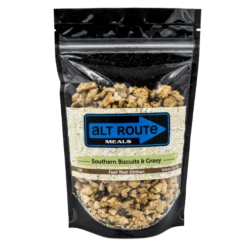 Alt Route Meals’ Southern Biscuits and Gravy is a real crowd pleaser. It is not often that you can get a plant based serving of a true southern classic. This is sure to get any morning off to a great start. Great on the trail or for a lazy morning brunch option. Southern Granny approved!