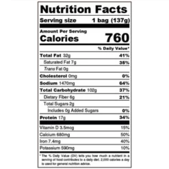 Single serving: 350 calories, 7g protein, 16g fat, 45g carb