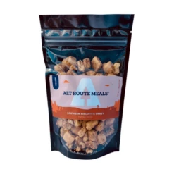 Alt Route Meals’ Southern Biscuits and Gravy is a real crowd pleaser. It is not often that you can get a plant based serving of a true southern classic. This is sure to get any morning off to a great start. Great on the trail or for a lazy morning brunch option. Southern Granny approved!