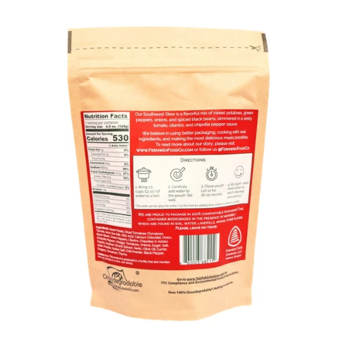 This meal is packaged in Omnidegradable Packaging – you can cook in the bag and it will break down completely anywhere microbes are present!