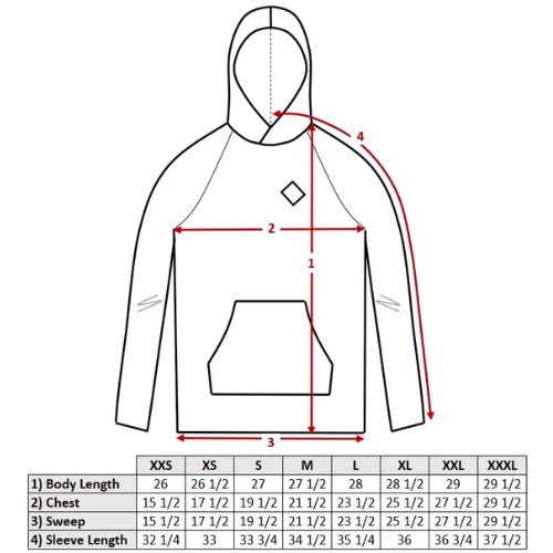 *Measurements of flat garment: Width – flat measurement across Chest & Hip | Length – shoulder to hem | Sleeve – length from center of neck