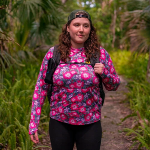 With a loose t-shirt-like fit and UPF50+ fabric, you’ll stay comfy all day whether you’re exploring a new trail close to home or far away. The smart lay-flat seam design, kangaroo-style front pocket, and breathable hood are constructed from breathable, protective fabric. The hood is large enough to cover not just the top of your head but also the sides of your face. Town Shirt added a button and loop closure underneath your chin in case of wind.