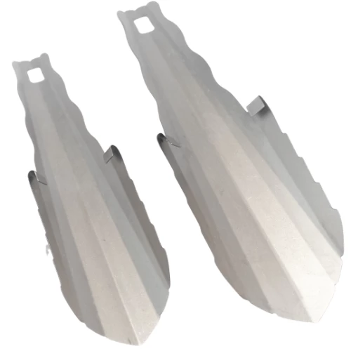Several features on this ultralight trowel put it a cut above the rest. First off, this product is precision cut and formed to provide lengthwise rigidity without adding additional weight. The digging end of the Tark Trowel has serrated edges to cut through earth and the contoured handle allows increased positive grip during use. The full rounded bent tabs at each side protect your hand from carnage during aggressive cathole excavation. The entire trowel is processed to dull and round the edges, for a comfortable feel in your hand, and eliminate the need for a coating on the handle.