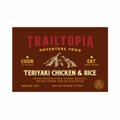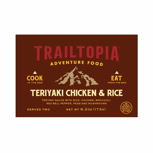Ships in 1-2 business days | Based in Rochester, MN | Est. 2013 Delightfully balanced and slightly sweet, this traditional Teriyaki-style rice dish is made with chicken and loaded with veggies including broccoli, red bell peppers, peas and mushrooms. Trailtopia adds their homemade Teriyaki sauce, making this one taste like it’s straight from your mama’s wok.Â
