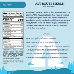 Alt Route Meals’ spin on the classic Thai Curry. The tomatoes, coconut milk and fresh basil add a sweet touch while balancing out the bold flavors from our curry spices. The chickpeas add in that extra protein, iron and fiber punch that will sustain your energy levels. Mixed with floral basmati rice, sourced directly from the Himalayas, this Thai Curry will be sure to impress.