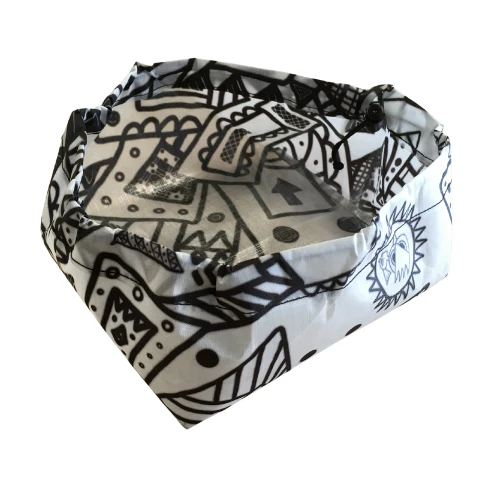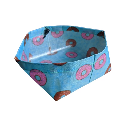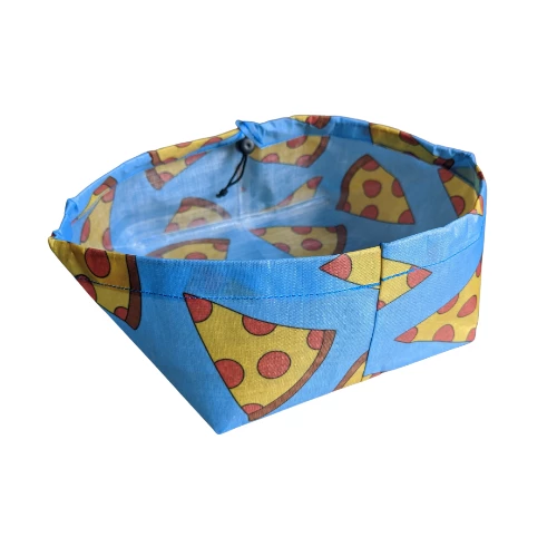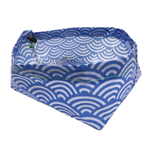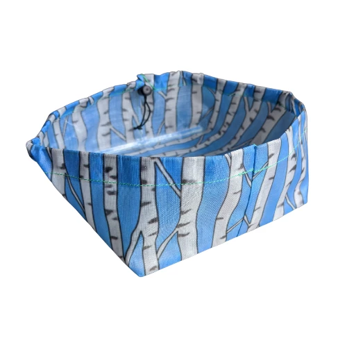 Ultralight DCF dog bowl designed with hiking, running, etc. in mind. New in the redesign is a drawstring running through the top, which adds a small amount of weight but significantly improves the form of the bowl.