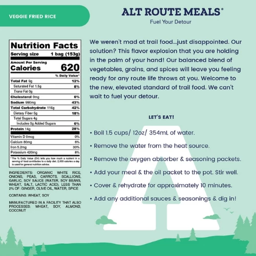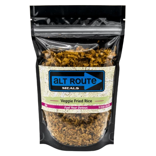 When all you can think about is the next all you can eat Asian food buffet in that upcoming trail town…. Alt Route Meals has the meal to hold you over until you arrive. Loaded with onions, garlic, peas and carrots this recipe will leave you feeling satisfied and nearly as full as that buffet, but without the added stomachache and instant regret from the overconsumption of MSG and other preservatives.