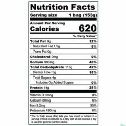 Single serving: 310 calories, 7g protein, 4.5g fat, 58g carb