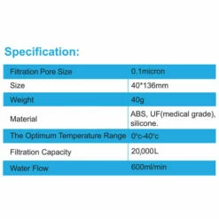 - Removes: Bacteria (99.999999%), Protozoan cysts, Cryptosporidium, E. Coli and Salmonella (99.999999%)